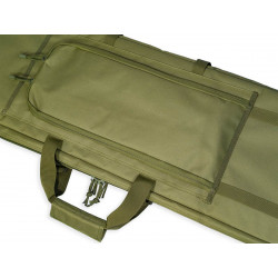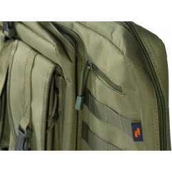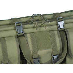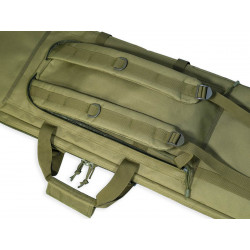 Удобство транспортировки: Кейс оснащён прочными нейлоновыми ручками с мягкой накладкой для комфортной переноски. Регулируемые плечевые лямки, спрятанные в специальном отделении на задней стороне, позволяют превратить чехол в рюкзак. Для уменьшения объёма кейса предусмотрены стропы с фастексами, что особенно важно при транспортировке оружия с оптическим прицелом.