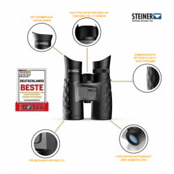 Удобство использования STEINER BluHorizons 10x42 отличается эргономичным дизайном, который обеспечивает удобный хват и комфортное использование даже при длительных наблюдениях. Компактность и лёгкость делают его удобным для переноски, а входящий в комплект нашейный ремень и футляр добавляют удобства при транспортировке.