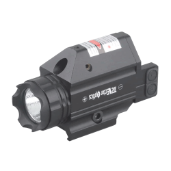 Устройство сочетает в себе лазерный целеуказатель и фонарь, что экономит место и упрощает использование. Лазерный прицел помогает точно наводиться на цель, а фонарь обеспечивает необходимую видимость, что делает этот аксессуар универсальным решением для различных задач.