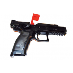 Флажок легко вставляется в патронник и надежно фиксируется затвором, четко демонстрируя, что оружие безопасно.