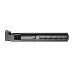 Соосность со стволом: Адаптер спроектирован с завышением оси приклада, делая её соосной стволу, что значительно повышает комфорт стрельбы и снижает ощущаемый импульс отдачи. Несмотря на то, что ось завышена, сохраняется возможность использовать механические прицельные приспособления.