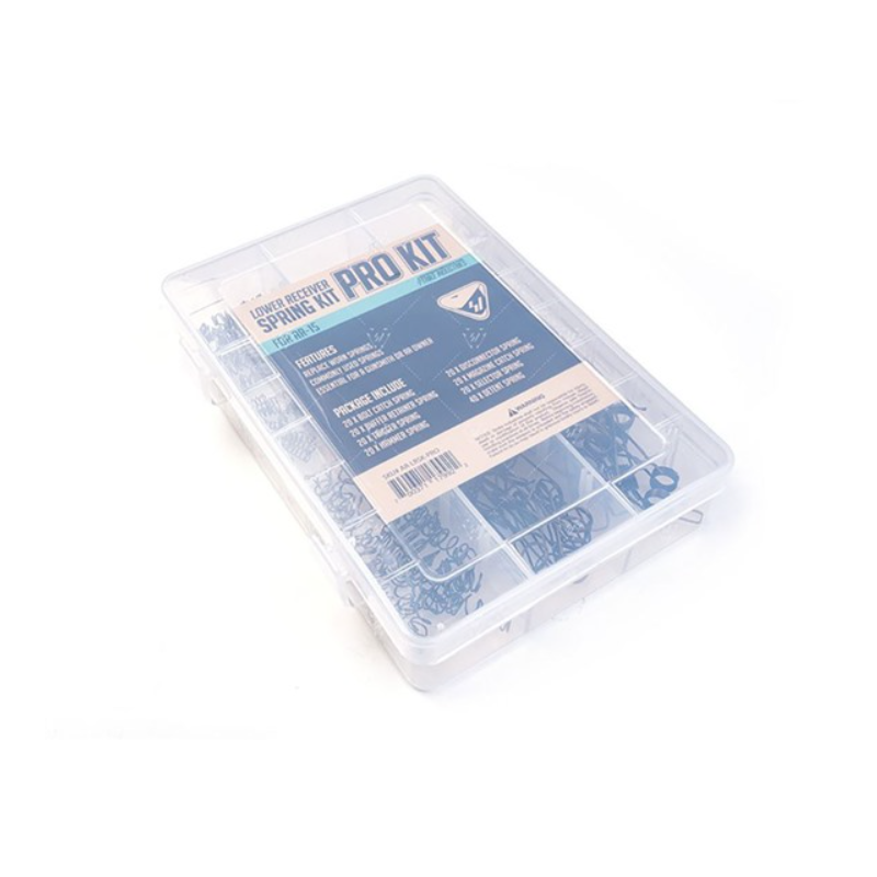Все необходимые пружины: Включает в себя по 20 штук каждой из 8 самых важных пружин, используемых в нижней части ствольной коробки AR-15.