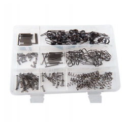Удобное хранение: Комплект поставляется в прочной и удобной прозрачной пластиковой коробке с отдельными ячейками для каждой пружины, что обеспечивает организованное хранение и быстрый доступ к нужной детали.