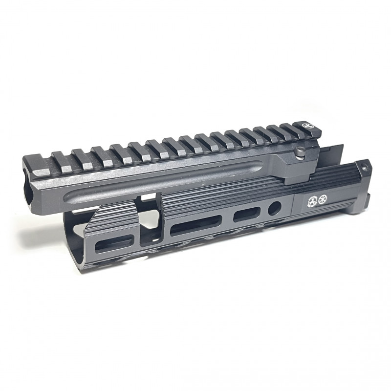 Комплект предназначен для модернизации АК/ВПО/Сайга исп. 030/033, предоставляя широкие возможности для установки тактических аксессуаров и улучшения эргономики оружия. Включает вывешенное цевье Armacon длиной 192мм с интерфейсом M-LOK и газовую трубку Хорт с планкой Пикатинни для размещения коллиматорного прицела и другого навесного оборудования.